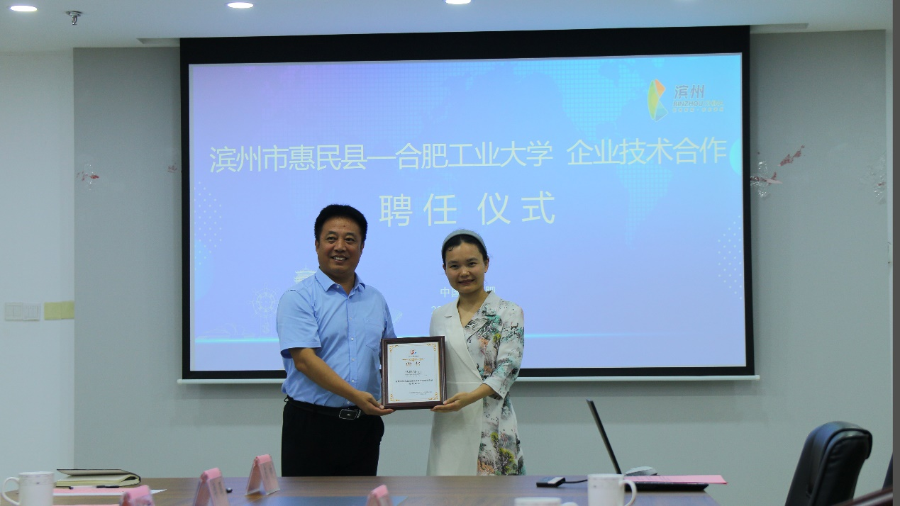张云广经理介绍了山东蔚蓝生物科技有限公司的相关情况与企业的技术需求。汪惠丽院长介绍我院相关研究情况,向滨州市领导与企业家展示我院教学、科研平台以及师资队伍的优越实力。各位专家围绕惠民企业技术难题交流发言,积极商讨人才对接的具体方案。立足学院平台,针对惠民县的实际情况进行深入探讨。双方就点对点的合作模式达成了深刻的共识,讨论了企业面临的技术难题并对后续合作进行了初步规划。开展技术人才项目对接,企业与专家达成了揭榜挂帅初步合作协议