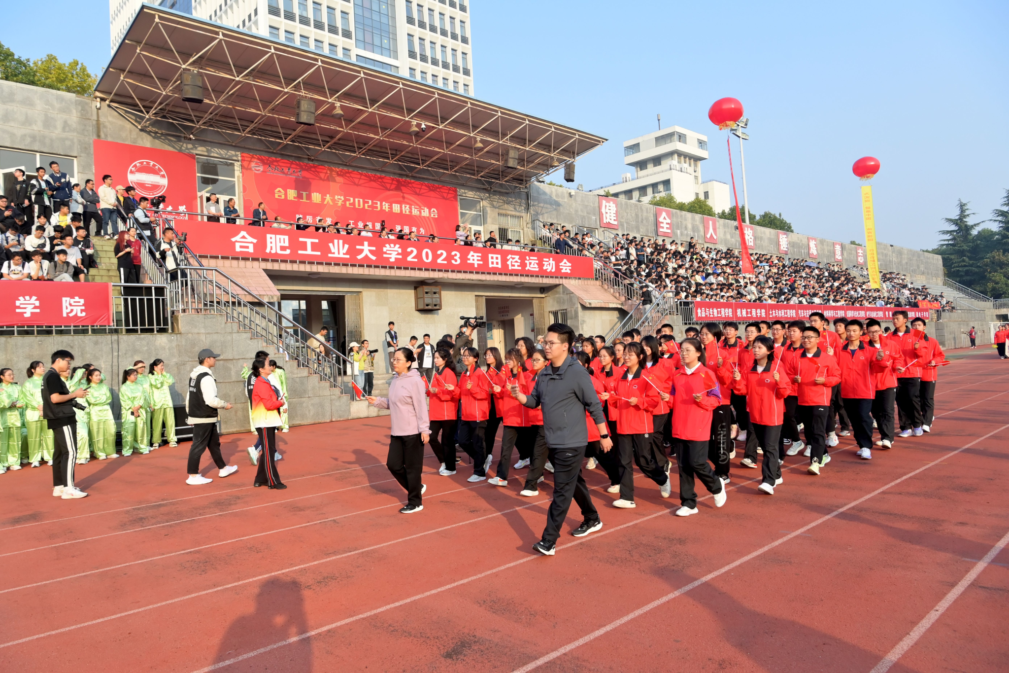 秋风送爽,旌旗飘扬,2023年bwin必赢线路检测田径运动会如约而至。开幕式上,我院师生精神抖擞、斗志昂扬,迈着整齐的步伐走过主席台,全场观众响起热烈的掌声和欢呼声。嘹亮的口号,矫健的步伐,整齐的动作,彰显了食生人团结拼搏、锐意进取的精神风貌。
