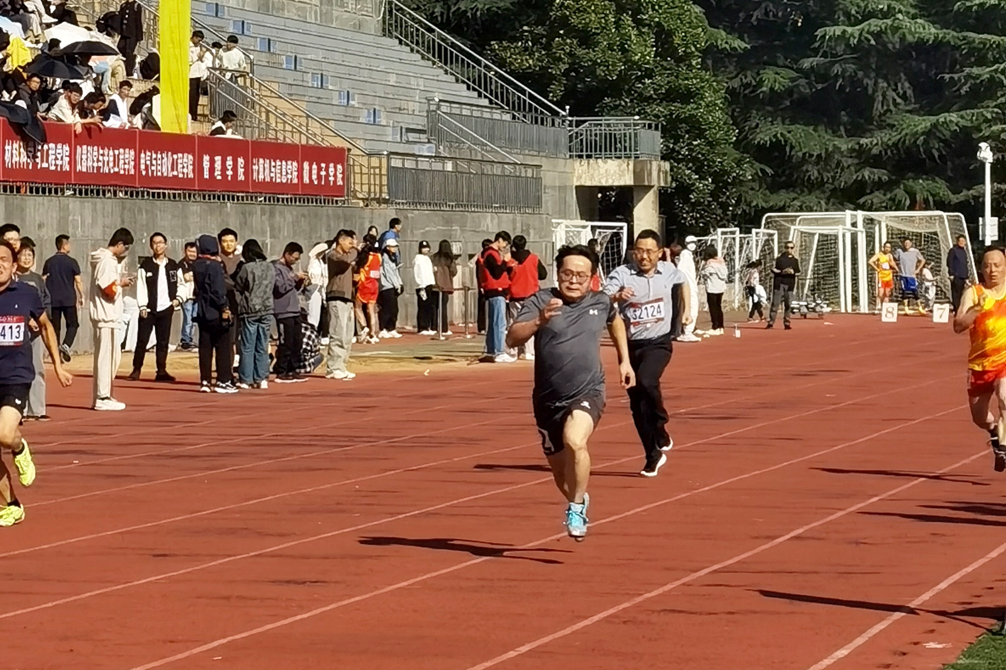 比赛期间,我院师生运动员挥洒汗水、不惧挑战,赛出风格,赛出水平,展现了蓬勃朝气与青春活力。学院志愿者时刻为运动健儿做好后勤保障工作,加油声响彻全场。此次运动会上,我院药物科学与工程系徐芳老师获教中组男子100米第一名,药物科学与工程系徐红梅老师、实验中心杨雪飞老师分别获立定跳远教老组女子立定跳远第四名与第五名,农产品生物化工教育部工程研究中心张文成老师、食品生物技术系王军辉老师、食品质量安全系瞿昊老师与药物科学与工程系徐芳老师获教中组男子4×100米第七名;在学生A组中,学院取得团体总分第八名与女子团体总分第八名的好成绩。