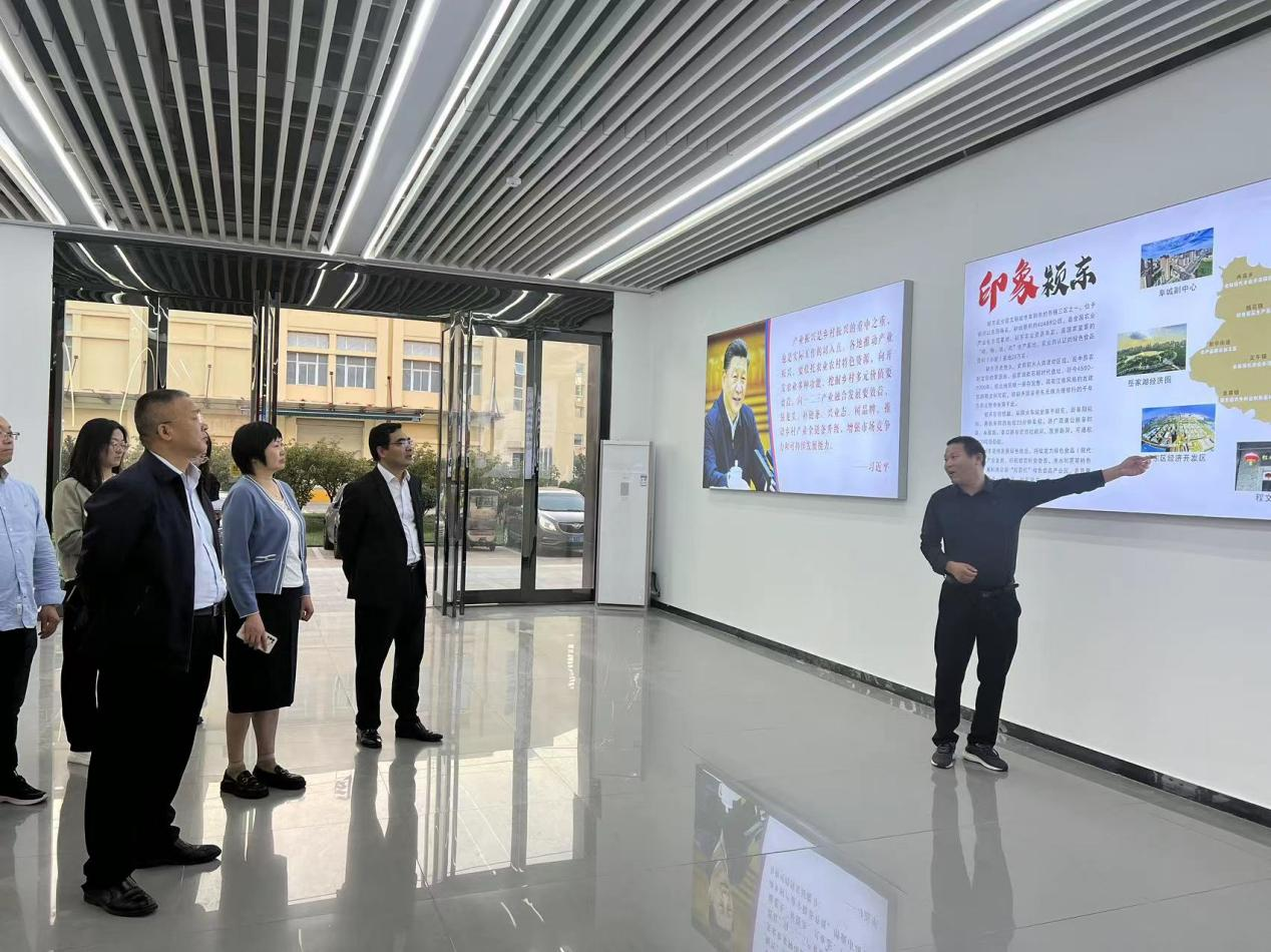 培训会结束后,徐宝才教授一行在阜阳市颍东区农业农村局局长屈化章的陪同下参观了阜阳市颍东绿色食品产业园,考察了阜阳市绿色食品产业发展现状、相关龙头企业及特色产品。随后考察了阜阳健诺生物科技公司,该公司主要经营乳制品、保健食品、婴幼儿配方食品、食品添加剂、特殊医学用途配方食品等产品。