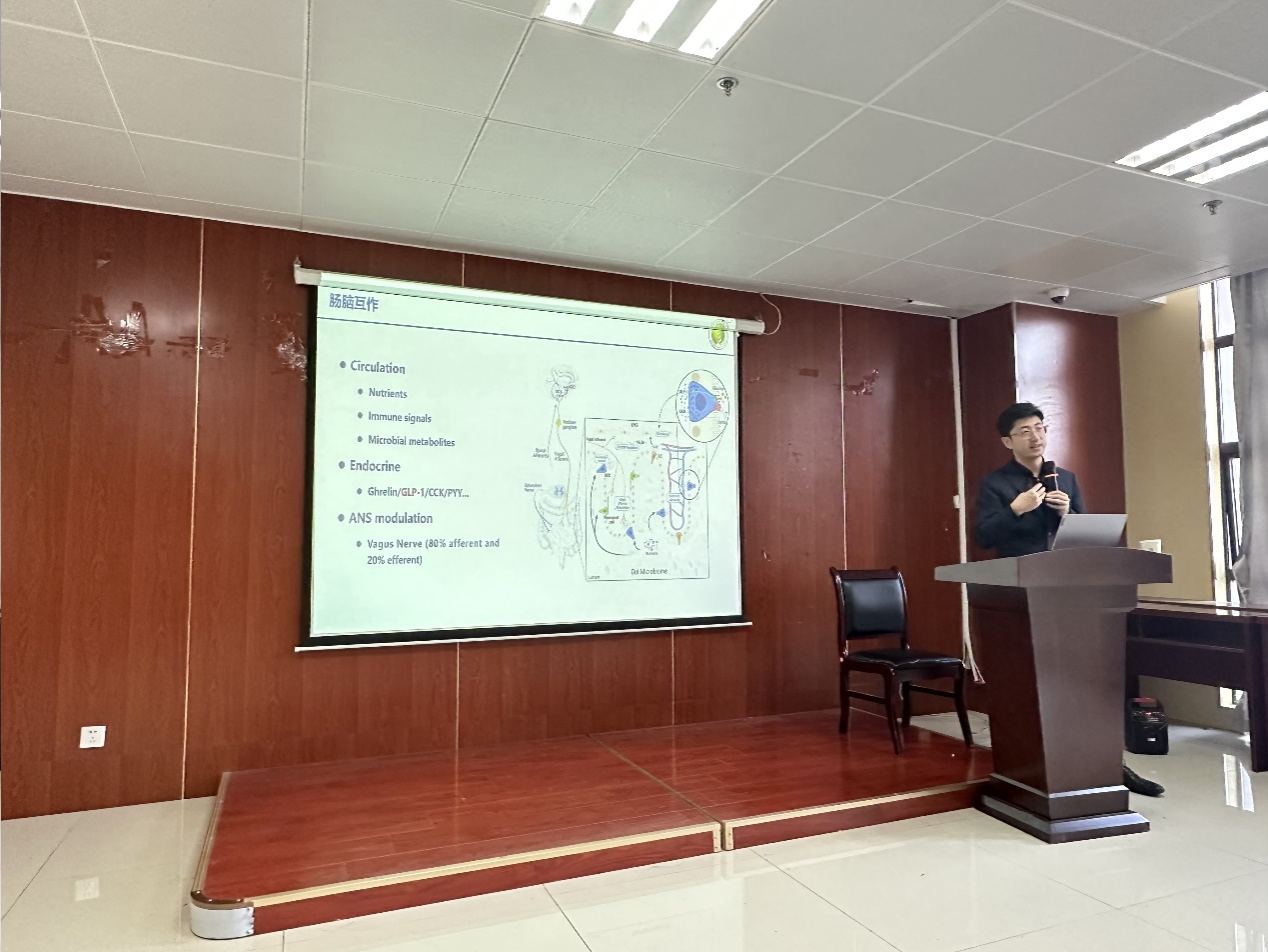 报告会上,刘志刚教授从我国即将进入老龄化社会的现状出发,介绍了衰老相关疾病如阿尔兹海默症等的致病因素及前沿进展,重点讲解了蛋氨酸限制、限制时间饮食等新型膳食模式对脑健康的保护作用,并从“肠脑轴”角度探讨了不同膳食模式脑健康保护作用的分子机制。报告内容科学严谨,充实且生动精彩,拓宽了师生们的科研视野。