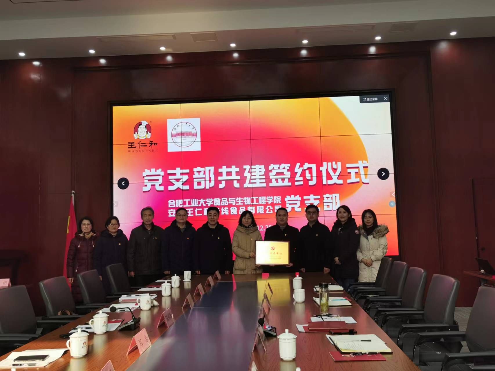 为深入学习贯彻党的二十大精神,推动党建与业务深度融合,以高质量党建引领高质量发展,12月29日上午,食品生物工程学院机关党支部走进安徽王仁和米线食品有限公司开展支部共建活动,举行签约仪式。食品生物工程学院党委书记陈树海、副院长郑志、副处级组织员齐明超,王仁和米线食品公司党支部书记王广际、副书记鲍偲硕,双方支部党员参加了本次活动。