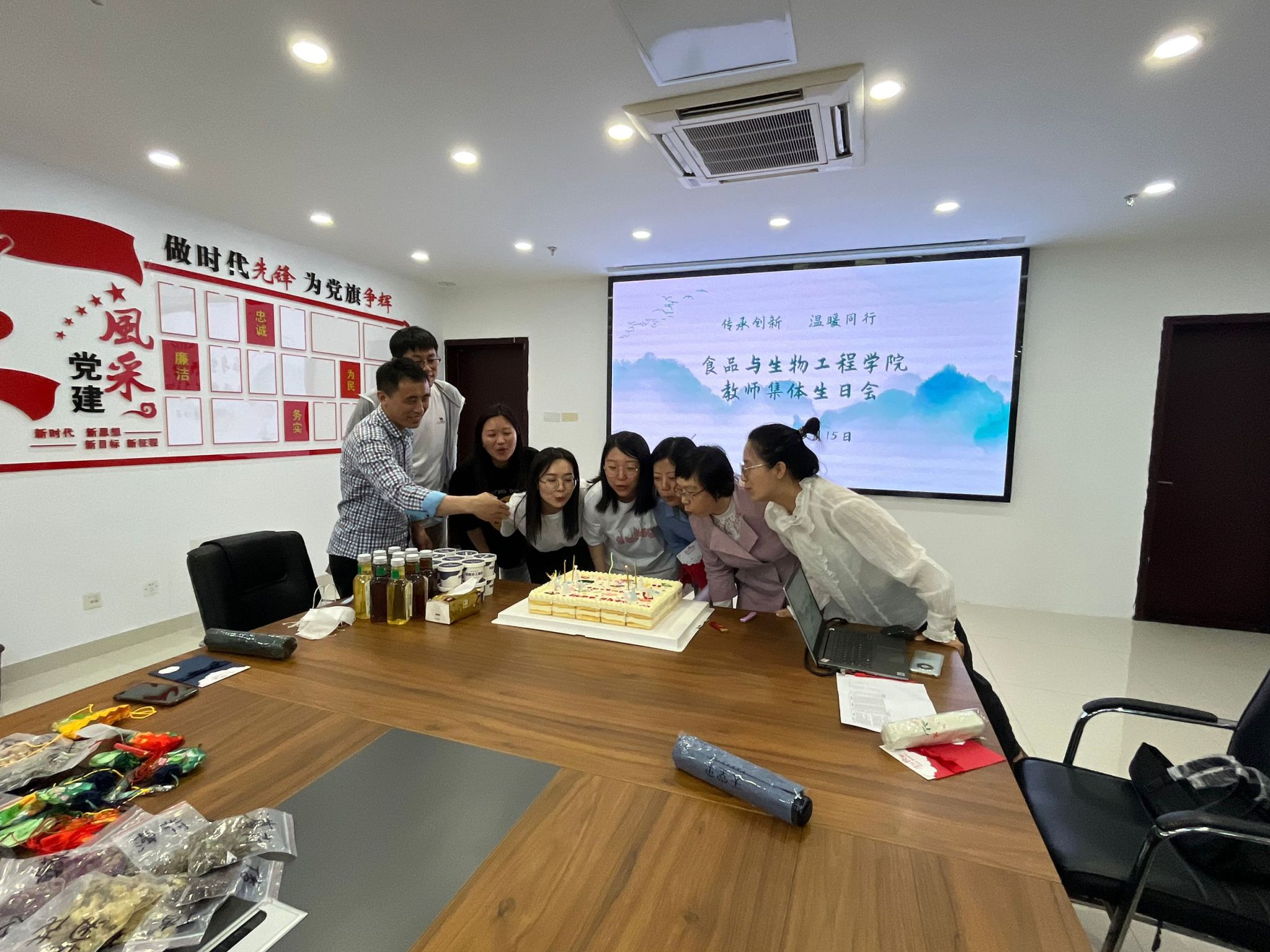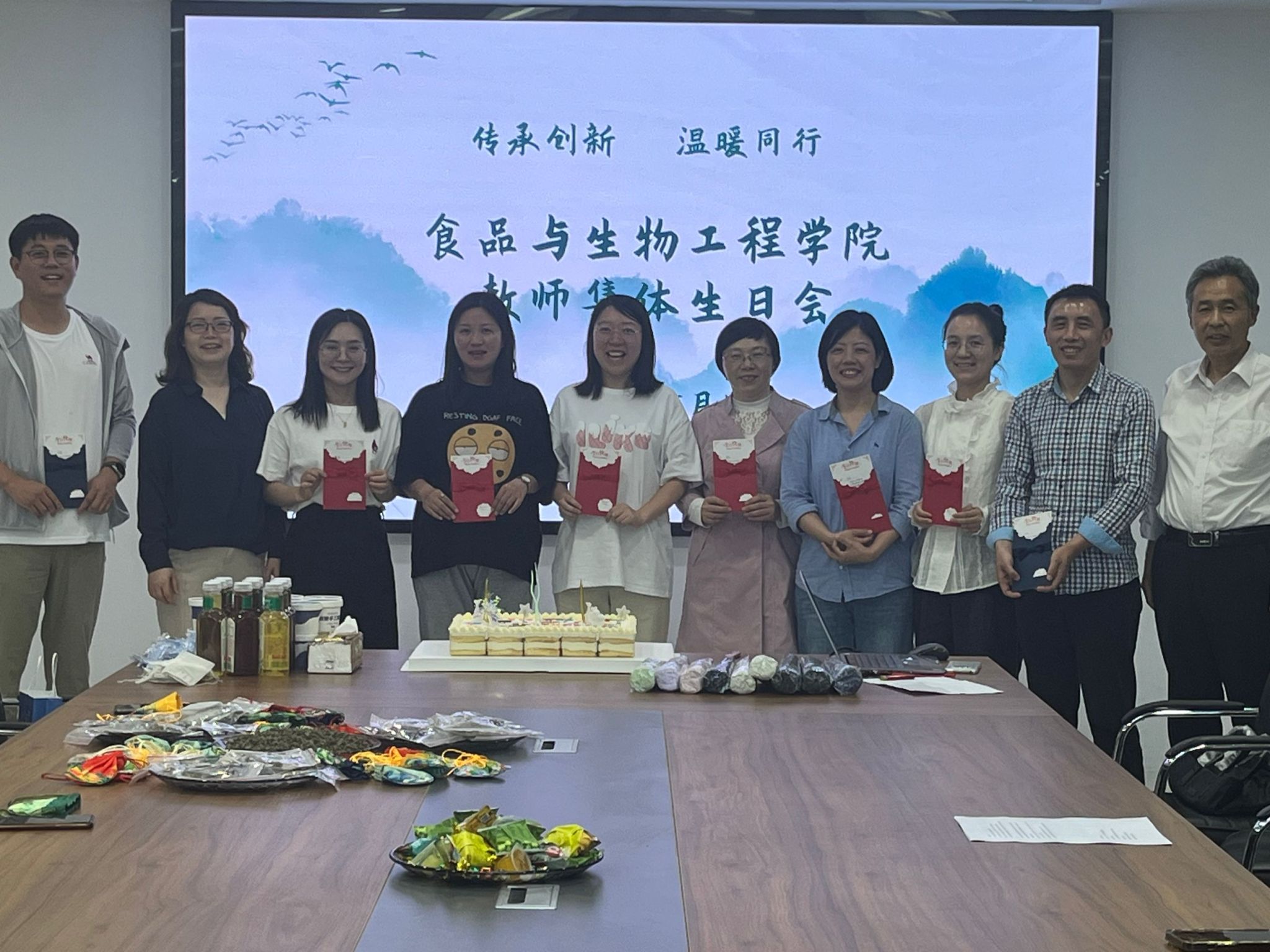 为了让学院教职工感受到集体的关怀,融洽同事关系,增进教师之间的沟通交流,提升教师的归属感、幸福感,5月15日下午,76net必赢线路检测中心在食生楼205举办“传承创新 温暖同行”集体生日会,为学院五、六月份生日的寿星老师庆祝生日。