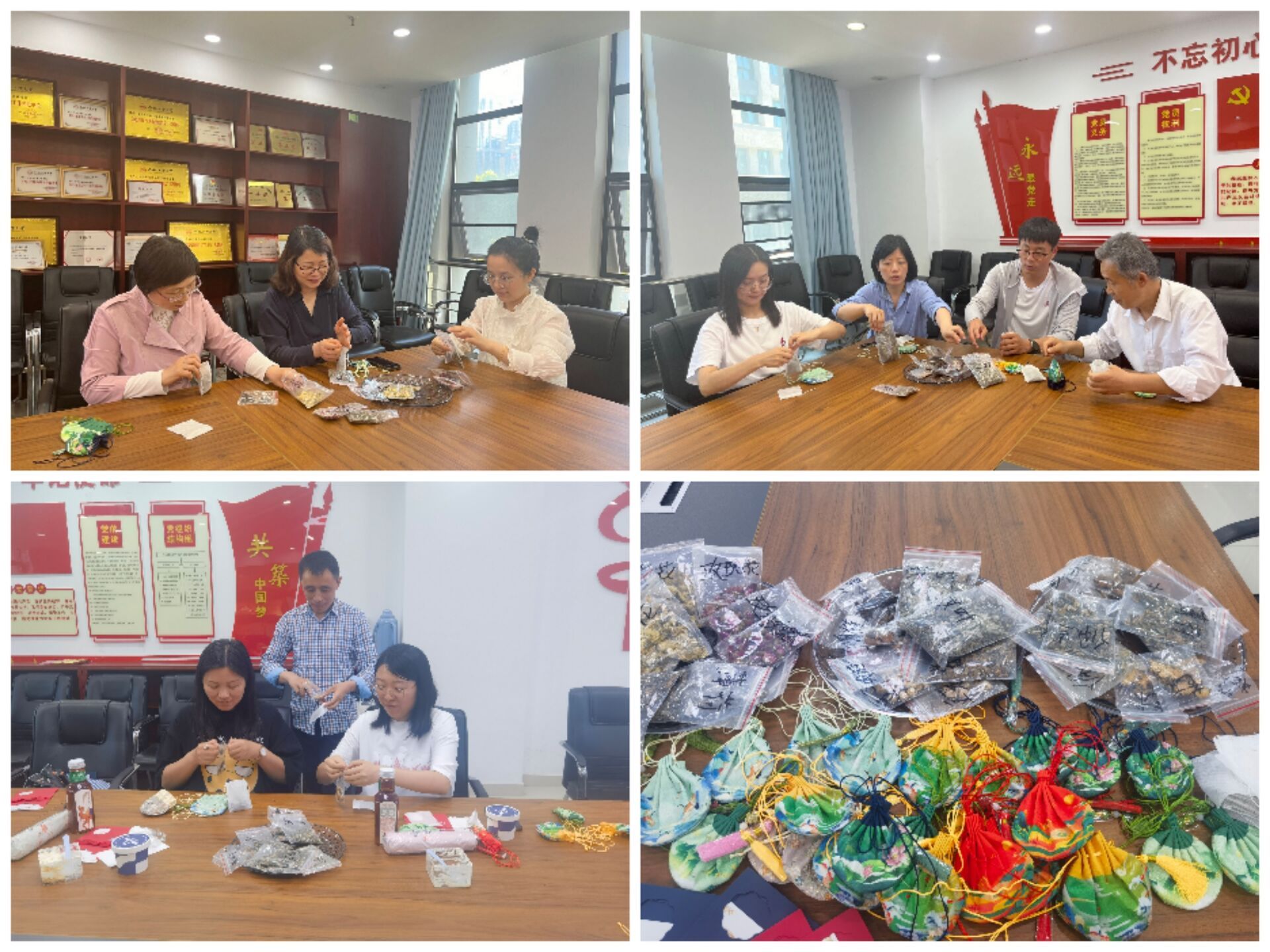 时逢夏至,又遇端午来临之际,为了传承中华民族优秀传统文化,学院还为寿星老师们准备了制作香包活动,老师们选择配方和香料巧手做香包,一个个精美的香包承载着爱心,寓意着吉祥,现场充满了欢声笑语。