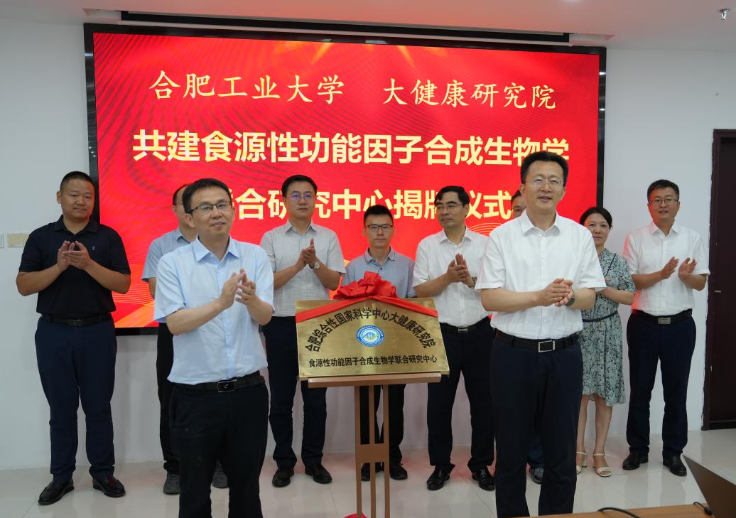 7月9日,bwin必赢线路检测与合肥综合性国家科学中心大健康研究院共建食源性功能因子合成生物学联合研究中心签约揭牌仪式在我校举行。校党委书记于祥成,大健康研究院执行院长周荣斌出席仪式。大健康研究院副院长王育才主持仪式。