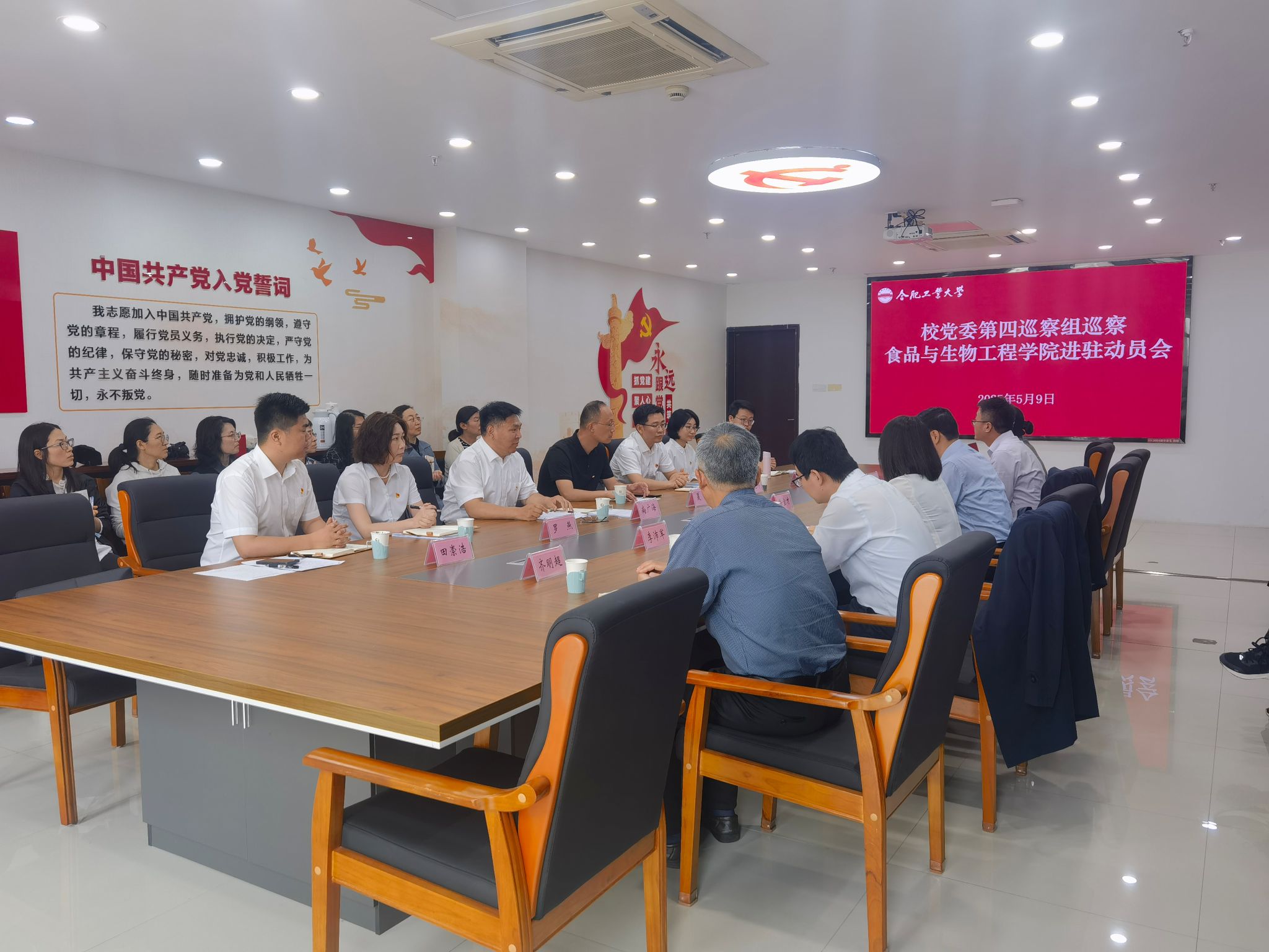 5月9日上午,校党委第四巡察组巡察76net必赢线路检测中心党委进驻动员会在食生学院楼205室召开。第四巡察组组长尚广海、巡察办副主任夏坤分别作动员讲话和工作要求,院党委书记孙彩霞代表学院党委作表态发言。会议由校党委常委、统战部部长、学院院长徐宝才主持。