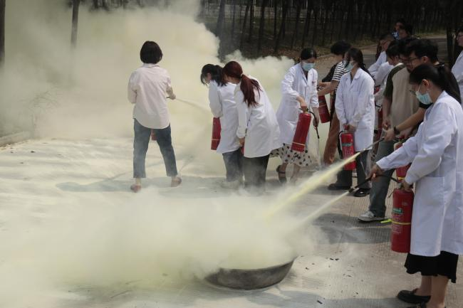 为普及师生消防知识,增强安全意识,尤其在应对火灾险情时,提升应急与逃生的能力,我院在校保卫部消防科的协助与指导下,于2025年5月28日,组织开展了以“消于始·防于未“燃””为主题的实验室消防安全应急培训与演练活动。学院副院长郑志、校保卫部消防科庞孙、张箭、实验中心教师、实验人员、研究生和本科生代表共计70余人参与此次活动。