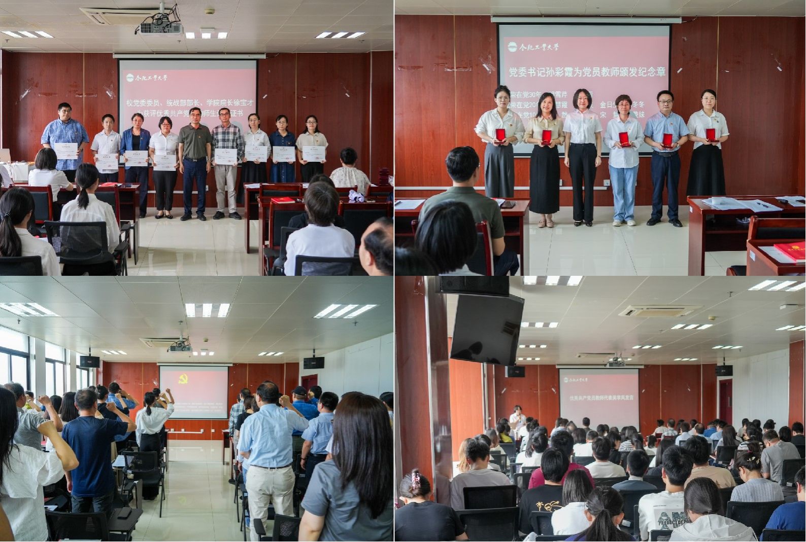 2025年新发展的党员代表进行入党宣誓,其他党员重温入党誓词,时刻牢记初心使命。优秀共产党员代表吴学凤老师和学生代表胡凯莹分别作交流发言,分享了作为党员发挥模范带头作用的经历和感悟。