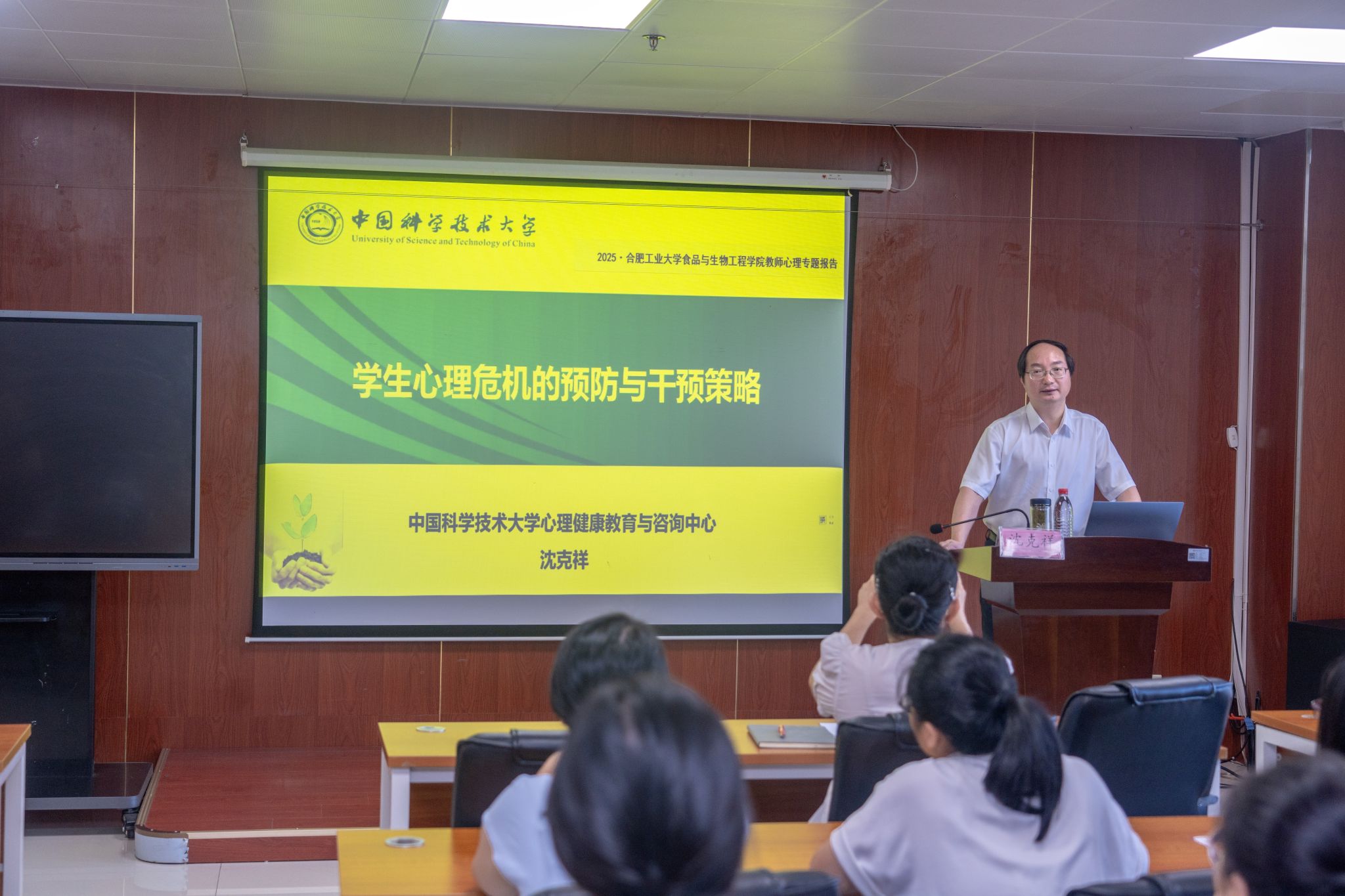 受聘仪式结束后,中国科学技术大学党委学生工作部副部长、心理健康教育与咨询中心主任沈克祥为全体辅导员、班主任和新增研究生导师作了题为《学生心理危机的识别与干预》的心理讲座。参会教师纷纷表示,本次培训内容实用、针对性强,对今后深入开展学生谈心谈话和心理危机干预工作具有重要指导意义。在经验分享环节,优秀导师代表陆剑锋以及优秀班主任代表程杰顺、徐芳分别结合自身工作实际,围绕导师、班主任工作的核心理念、角色定位、工作内容和工作方法等作了交流发言,为新任导师、班主任提供了有益借鉴。