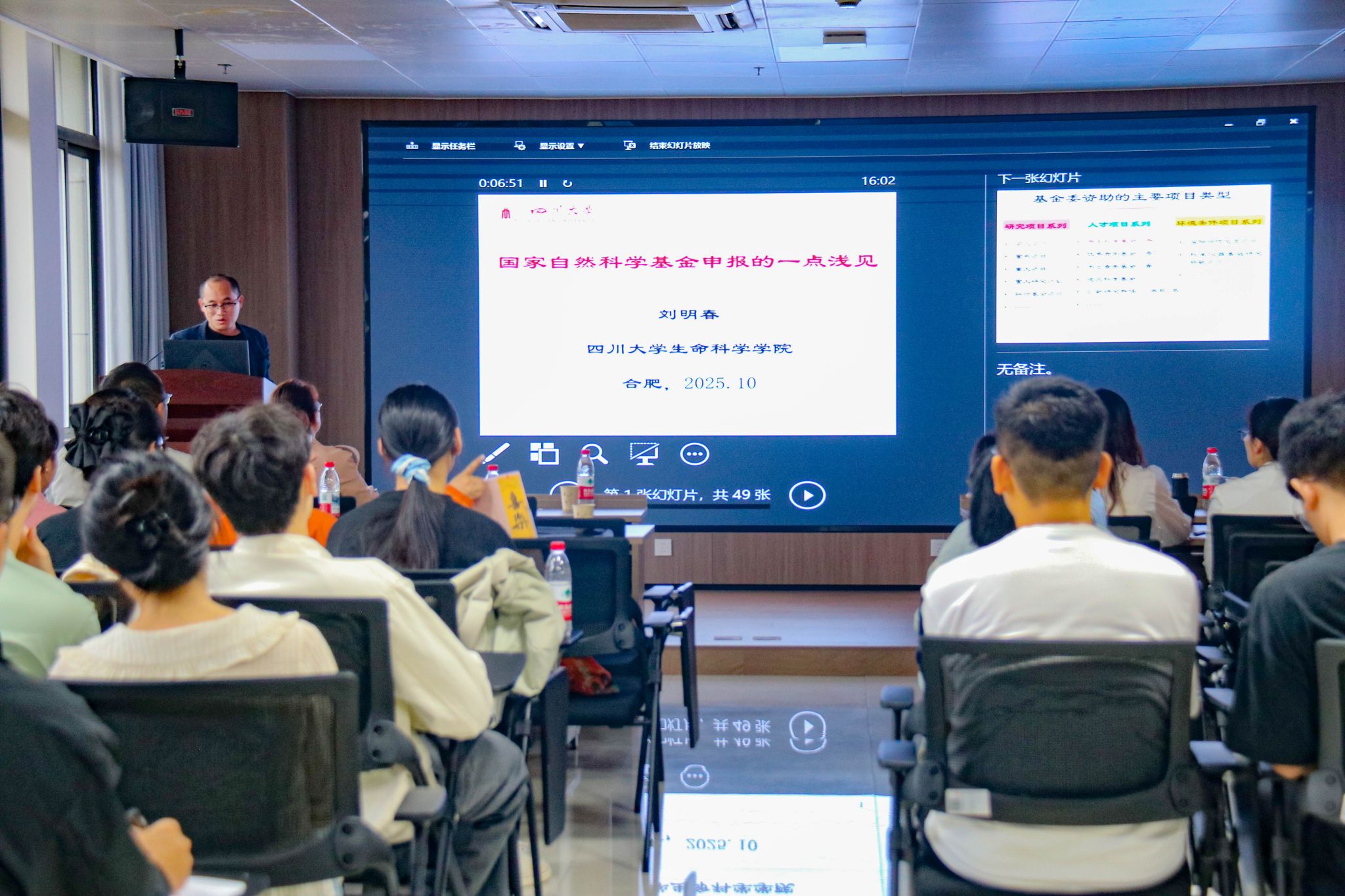 10月12日下午,四川大学生命科学学院刘明春教授应邀莅临76net必赢线路检测中心,在306会议室作国家自然科学基金项目申报经验分享。