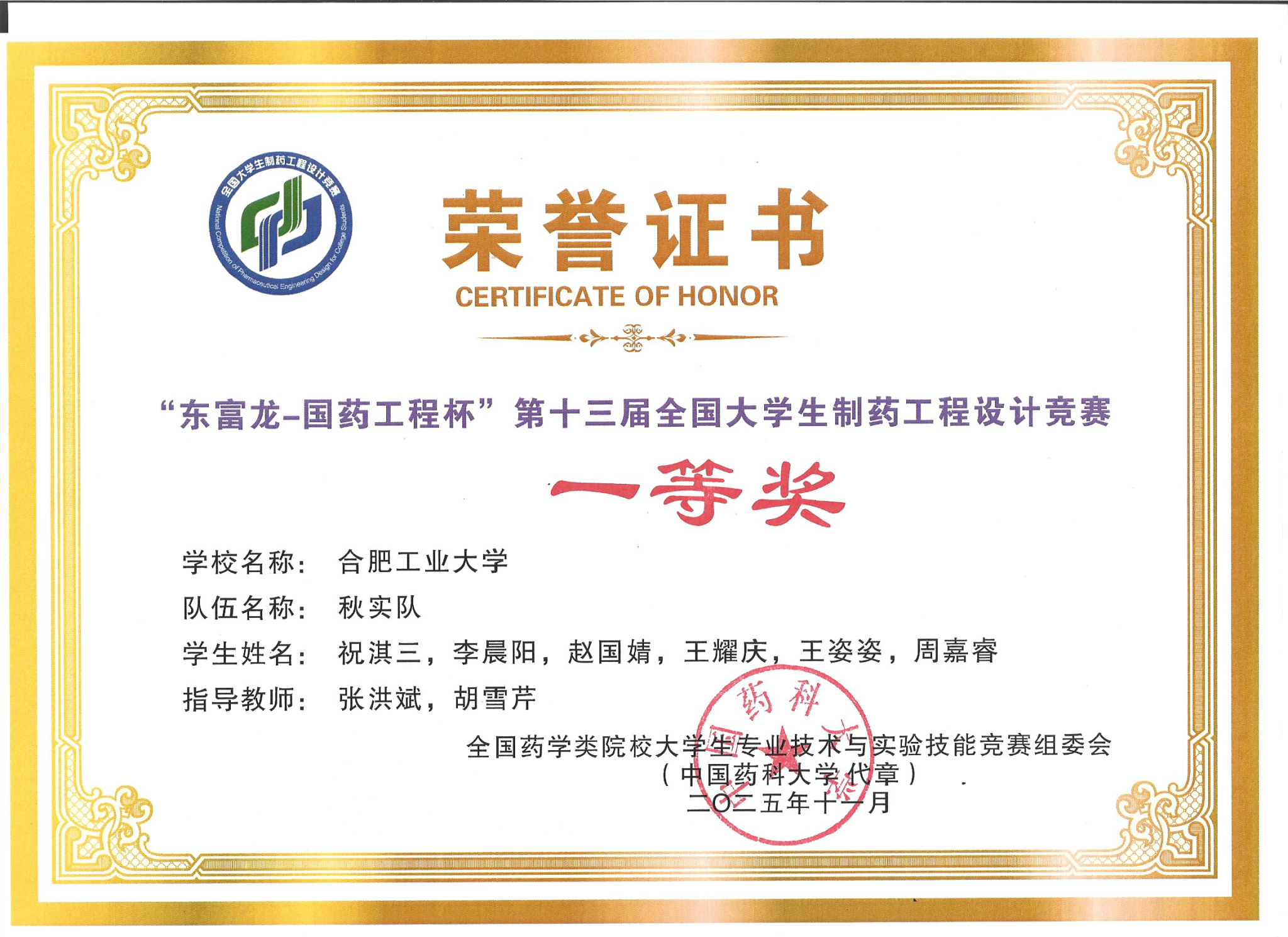 此次竞赛有效提升了我校学生的创新思维、工程设计与实践能力,充分展现了团队协作精神,也彰显了我校在制药工程实践教育方面的扎实成效与育人水平。76net必赢线路检测中心将以此次获奖为契机,持续深化创新育人改革,为医药健康产业输送更多兼具专业知识与工程素养的高素质人才,助力我国制药工业高质量发展。