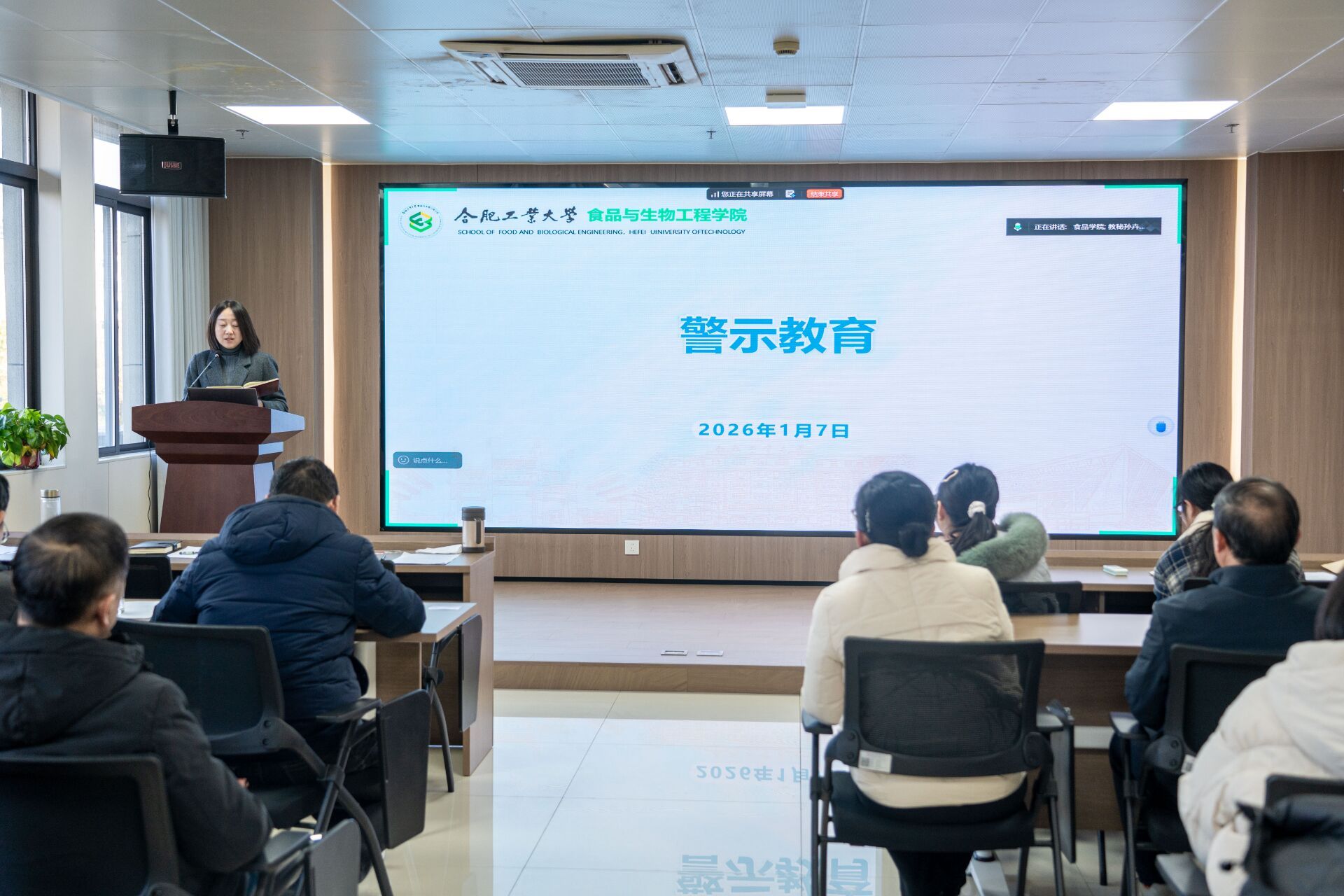 1月7日,76net必赢线路检测中心在306会议室召开全院教职工大会,学院党委副书记兼纪委书记李艳面向全体教职工开展专题警示教育。