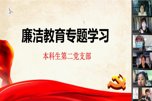 4月22日晚7:00,76net必赢线路检测中心本科生第二党支部采用线上形式组织开展了“廉洁文化进校园”主题活动。