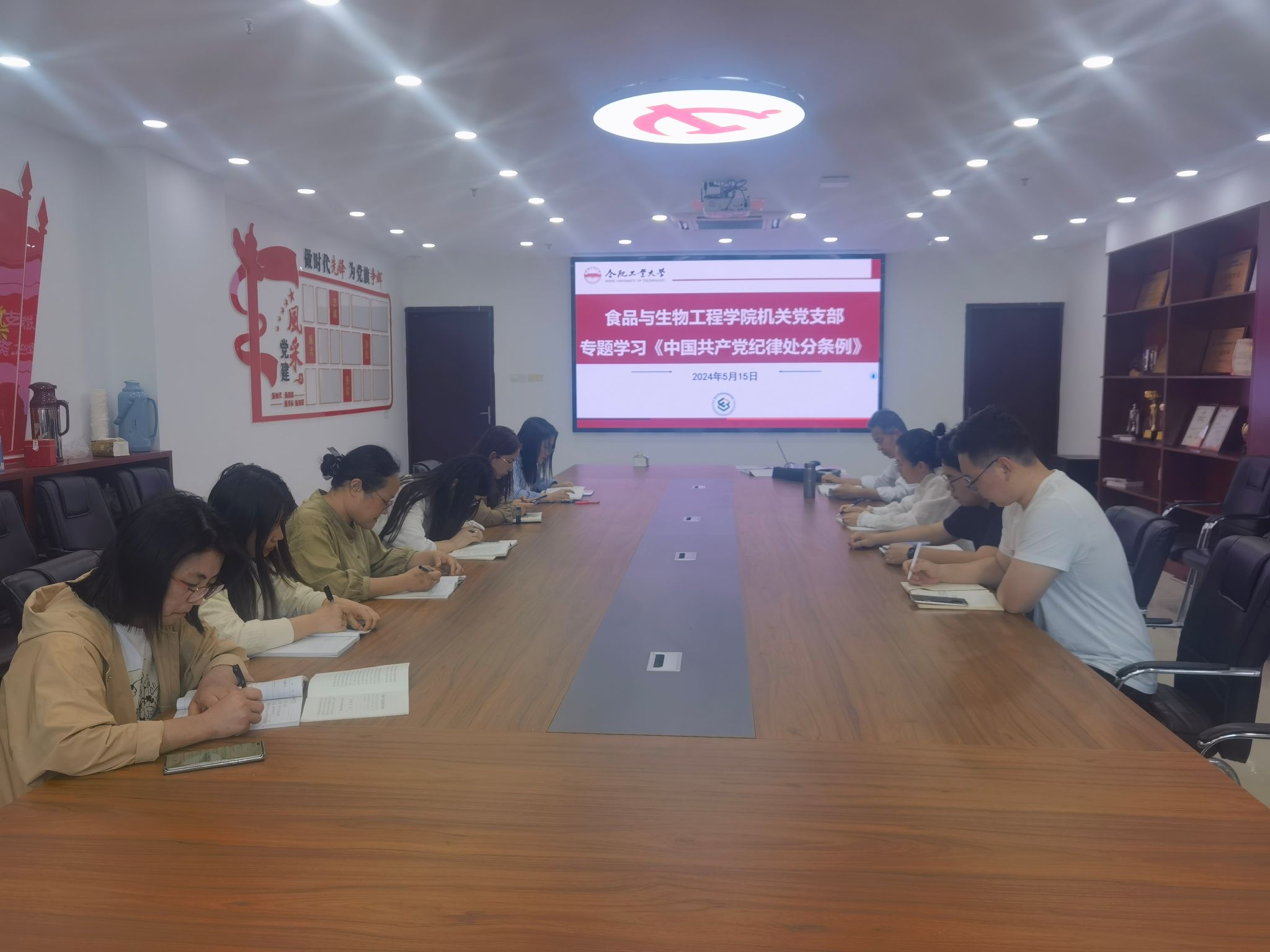5月15日下午,76net必赢线路检测中心机关党支部在食品楼205组织党纪教育专题学习,全体党员、机关各科室老师参加,会议由党支部书记李金凤主持。