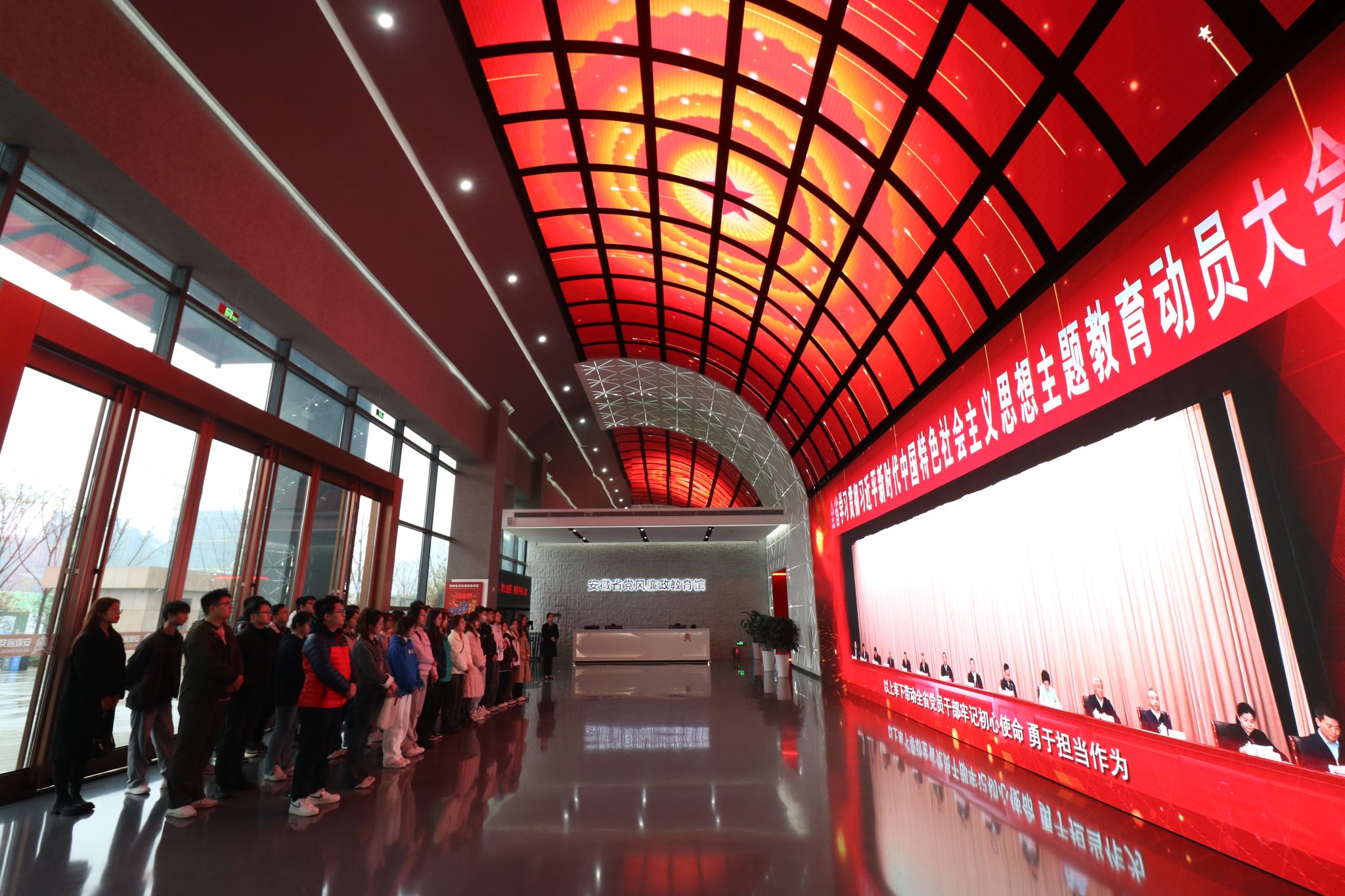 3月27日下午,76net必赢线路检测中心组织第71期党校入党积极分子班、发展对象班和预备党员班学员代表40人在2022级辅导员陈海杰的带领下前往安徽省党风廉政教育馆进行实践学习。