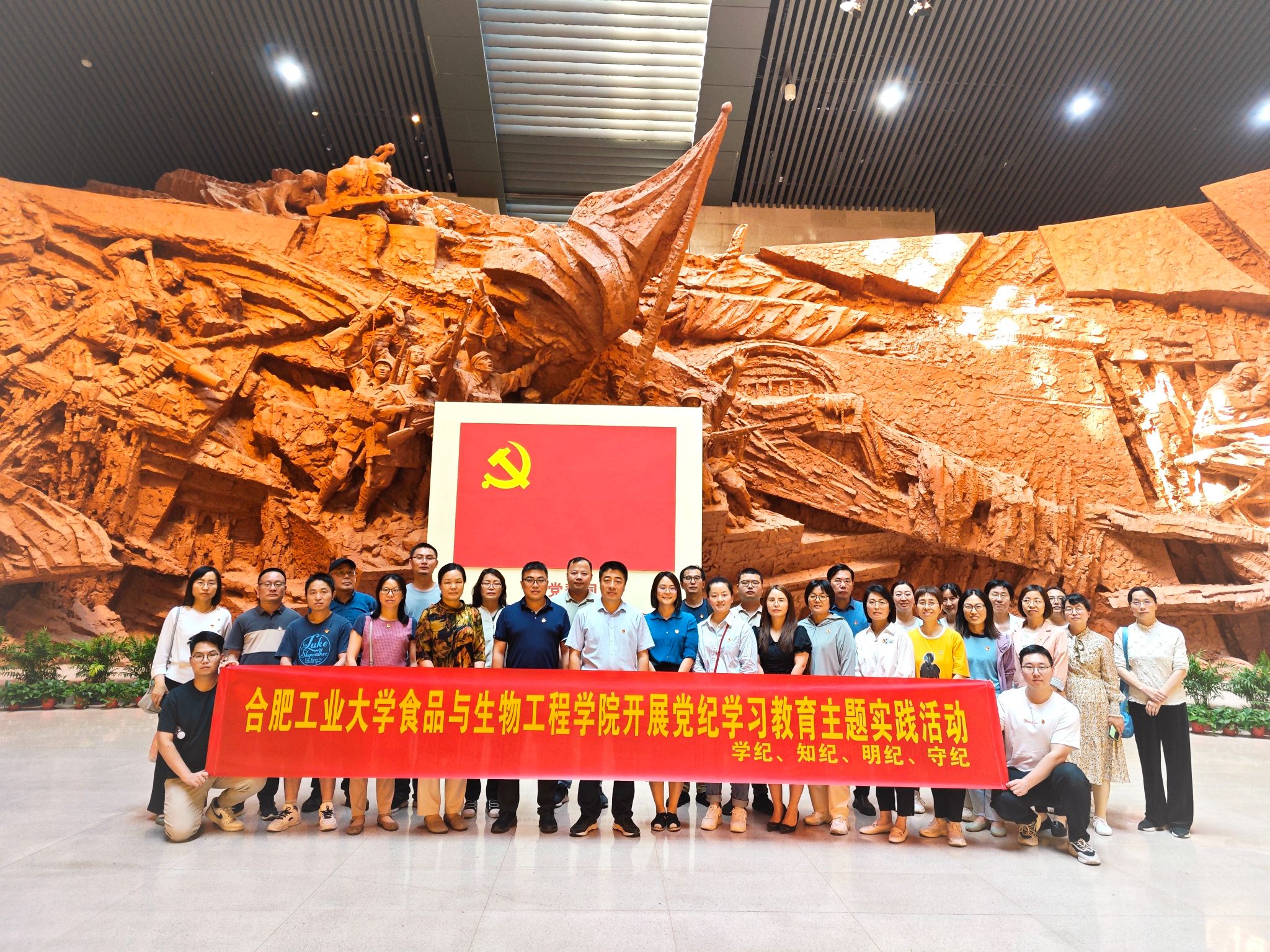 为弘扬渡江战役精神,缅怀革命先烈,汲取奋进力量,5月29日,食生学院组织教师党员赴渡江战役纪念馆开展党纪学习教育主题实践活动,学院机关党支部、药科系党支部、食生系党支部、实验中心党支部等30余名党员参加活动。