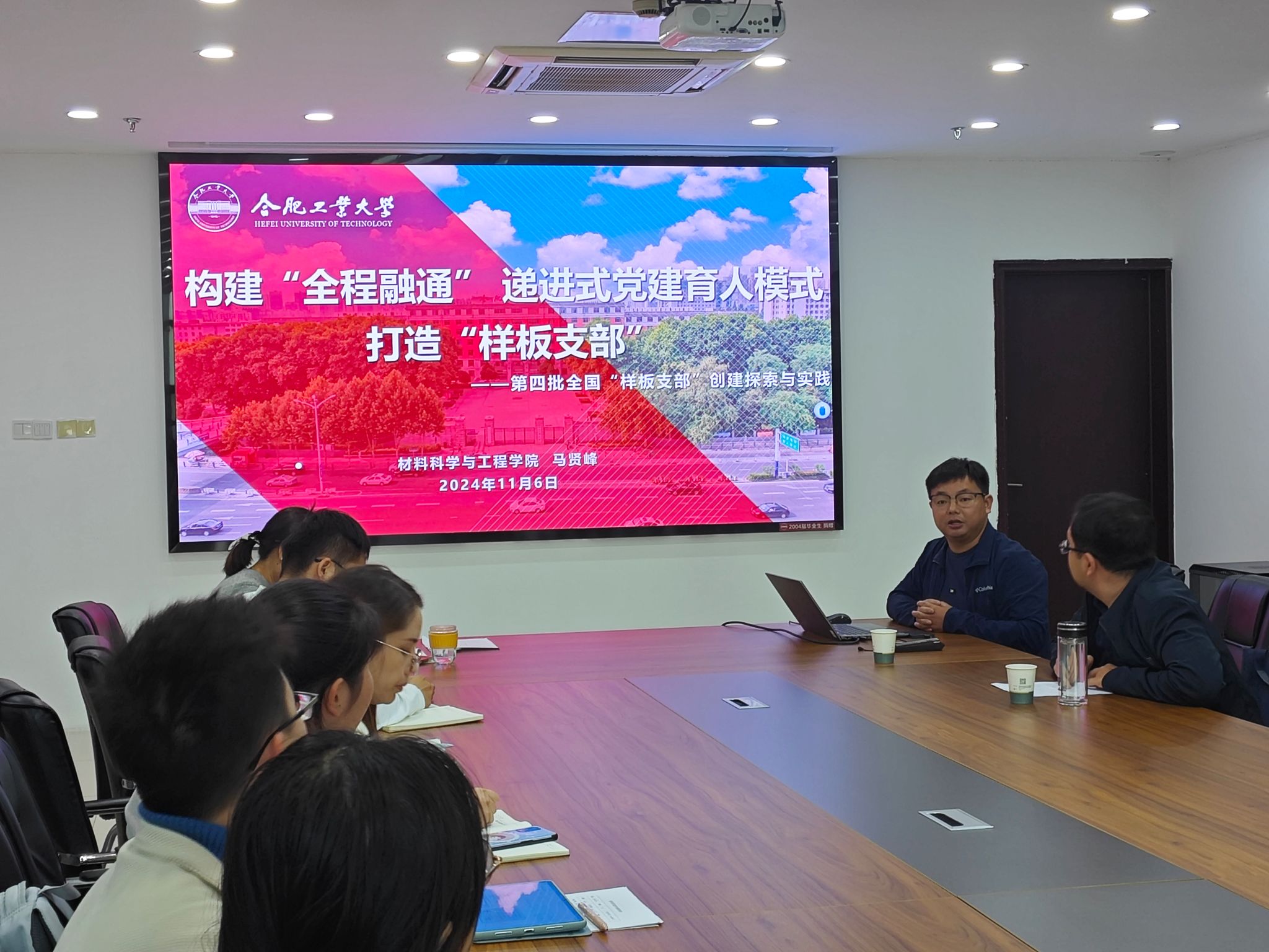 分享会上,马贤峰老师详细介绍了材料学院本科生第二党支部申报和评选为2024年教育部立项的第四批全国党建工作样板支部培育单位的过程。围绕“全程融通”四阶段递进式“一体化”党建育人工作体系和“四位一体”样板党支部建设模式,分享了支部工作思路和特色做法。土木学院本科生第五党支部是2018年教育部立项的第二批全国党建工作样板支部培育单位。米尔扎提江老师围绕党支部建设“七个有力”,详细介绍了教育党员、管理党员、凝聚师生、服务师生等等具体做法,分享了样板支部培育创建的思路、举措和成果。随后,两位老师与各支部书记支委就支部党员发展管理、品牌创建、项目申报、特色展示等方面开展了深入交流。