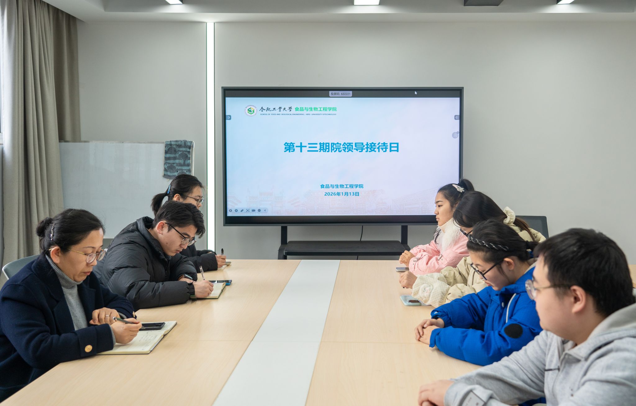 1月13日,76net必赢线路检测中心在翡翠湖校区学生公寓4号楼学生社区,组织开展第十三期院领导接待日,会议由2025级辅导员乐圣粤主持,学院党委副书记兼纪委书记李艳出席会议,13名本科生、研究生代表参与会议。学生代表围绕课程教学、日常管理、校园活动和科研困惑依次发言。李艳认真听取并记录了同学们提出的各项意见与建议,针对部分问题现场予以解答和说明,并表示学院将高度重视同学们反映的情况,后续将分类整理,逐步推进落...