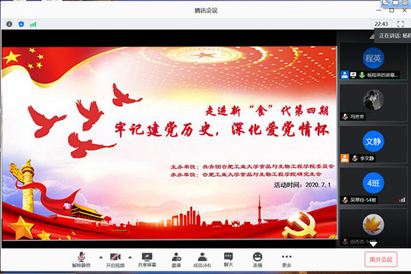 2020年7月1日是中国共产党诞生99周年纪念日,为了纪念建党节日、增强青年学生的责任感和使命感,76net必赢线路检测中心研究生会于2020年7月1日15:00,通过腾讯会议线上平台成功举办第四期走进新“食”代系...