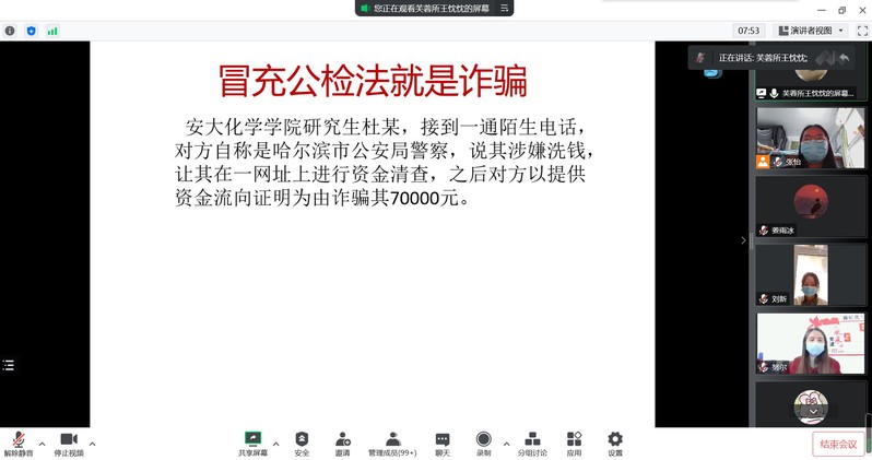 近日,76net必赢线路检测中心开展了“反诈警醒,疫路同行”线上专题宣传教育讲座,特邀合肥市公安局芙蓉派出所王忱忱警官担任主讲,学院相关负责人以及各年级200余名学生代表参加了此次活动。王警官通过图文结合,用生动...