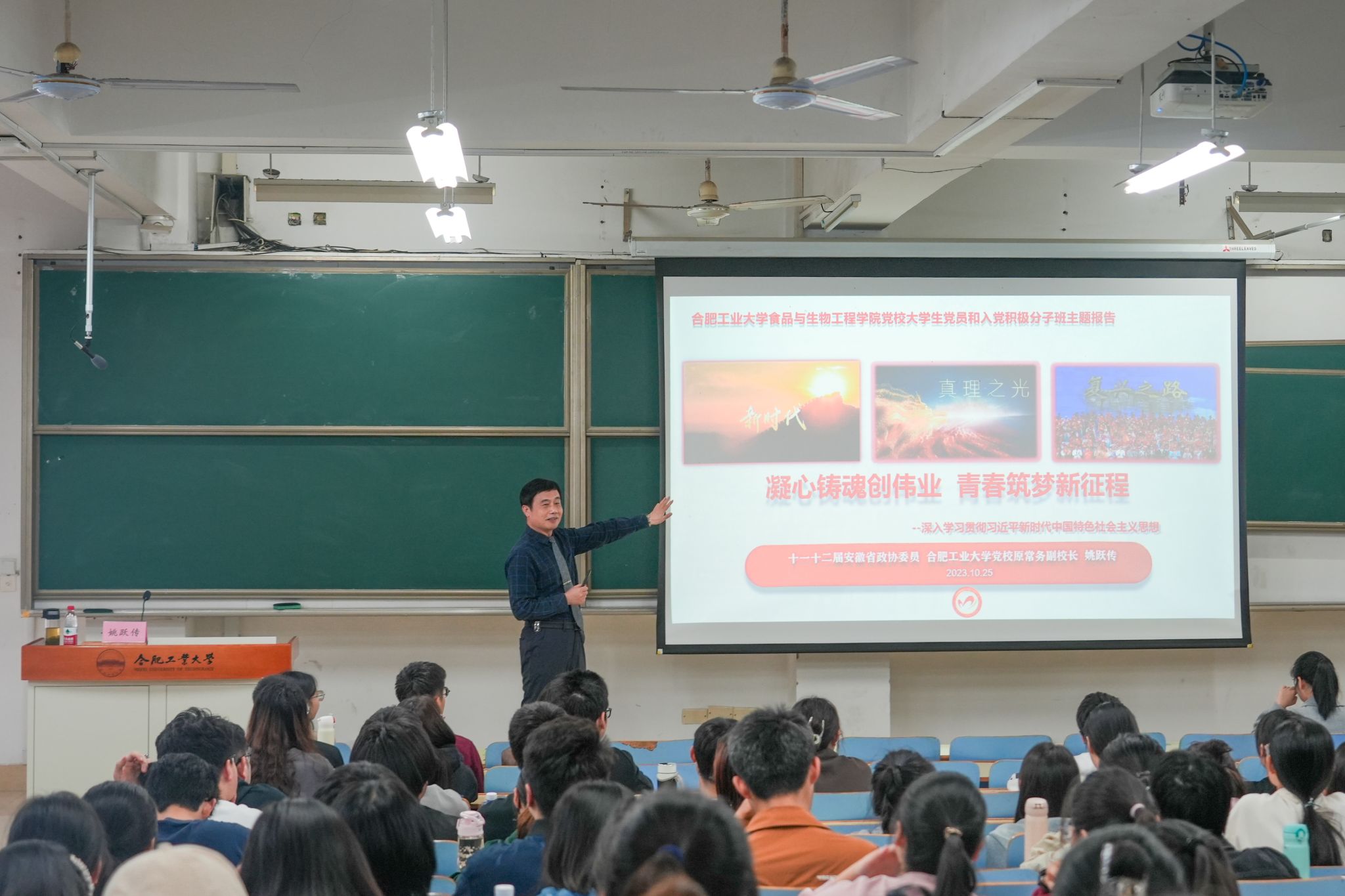 10月25日,76net必赢线路检测中心开展“凝心铸魂创伟业,青春筑梦新征程”专题党课。安徽省政协委员、bwin必赢线路检测党校原常务副校长姚跃传担任主讲,学院党委副书记兼纪委书记李艳主持,学院各学生党支部党员、第70期预备党员班、第70期发展对象班和第70期入党积极分子班全体学员参加学习。姚跃传以《凝心铸魂创伟业,青春筑梦新征程——深入学习贯彻习近平新时代中国特色社会主义思想》为题,阐述了中国式现代化的中国特色、本质...
