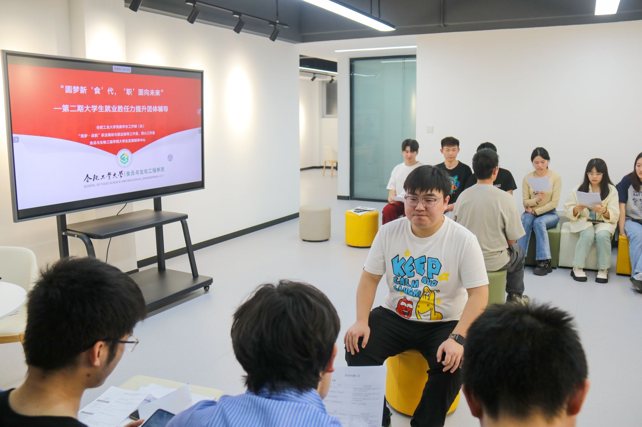 4月19日下午,由校党委学生工作部(处)“筑梦·启航”职业规划与就业指导工作室主办、76net必赢线路检测中心大学生发展辅导中心承办的第二期“圆梦新‘食’代,‘职’面向未来”——大学生就业胜任力提升团体辅导第二次活动,在翡翠湖校区心理中心团辅室举办。“筑梦·启航”职业规划与就业指导工作室责人李艳担任领导者,来自不同学院的学生自主报名参加。活动伊始,同学们围坐在一起,在领导者的指引下,同学们自愿上台分享上次活...