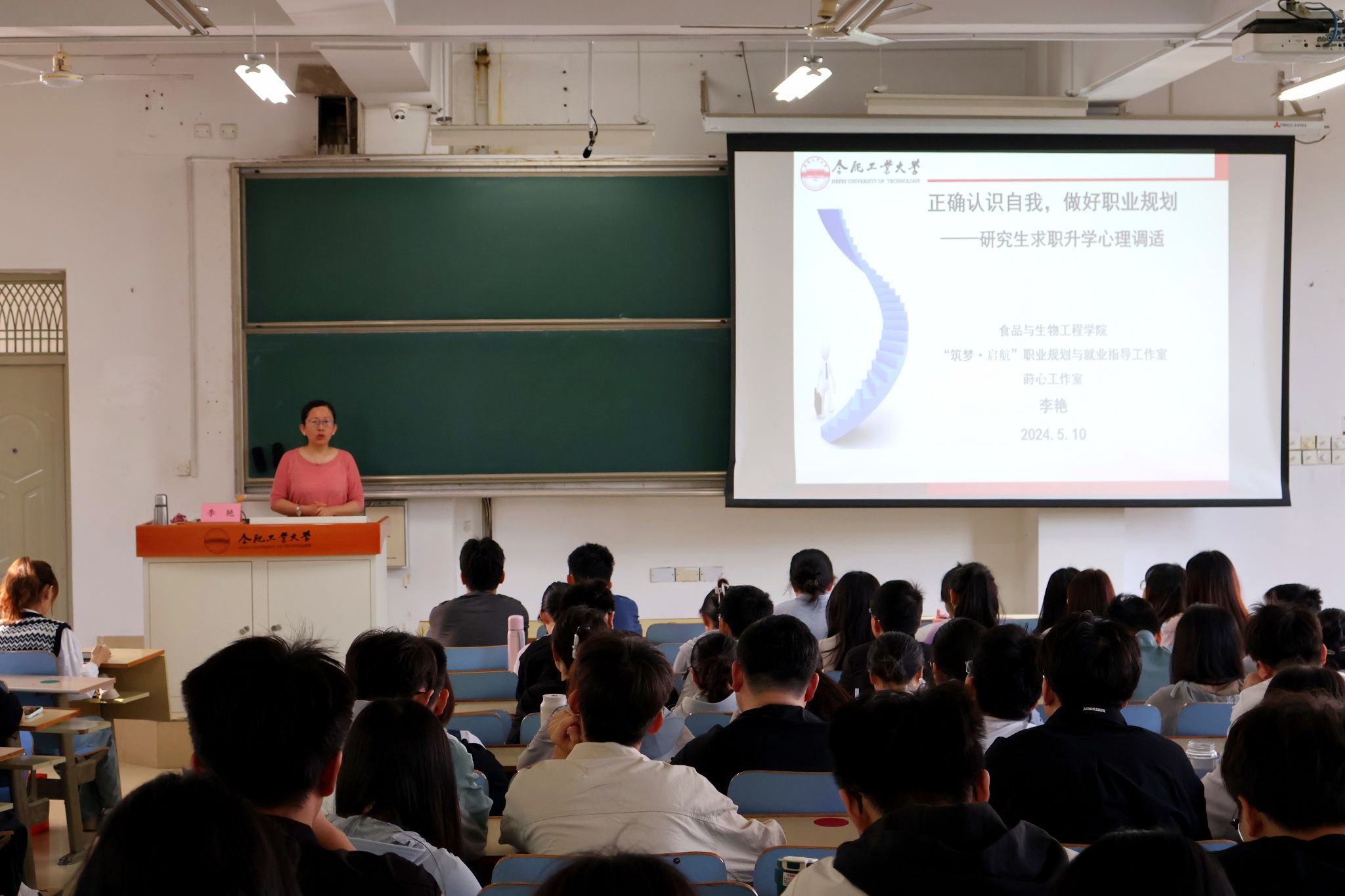 5月10日上午,“筑梦·启航”职业规划与就业指导工作室、莳心工作室、76net必赢线路检测中心在翠三教201举办“正确认识自己,做好职业规划——研究生求职升学心理调适”主题讲座。学院党委副书记兼纪委书记、国家二级心理咨询师、中国心理学会注册心理师李艳担任主讲,2023级全体研究生参加本次讲座。讲座伊始,李艳结合当前食品、生物、制药行业的就业形势以及现在研究生就业面临的各种挑战,引导学生认清就业形势,客观认识自己,...