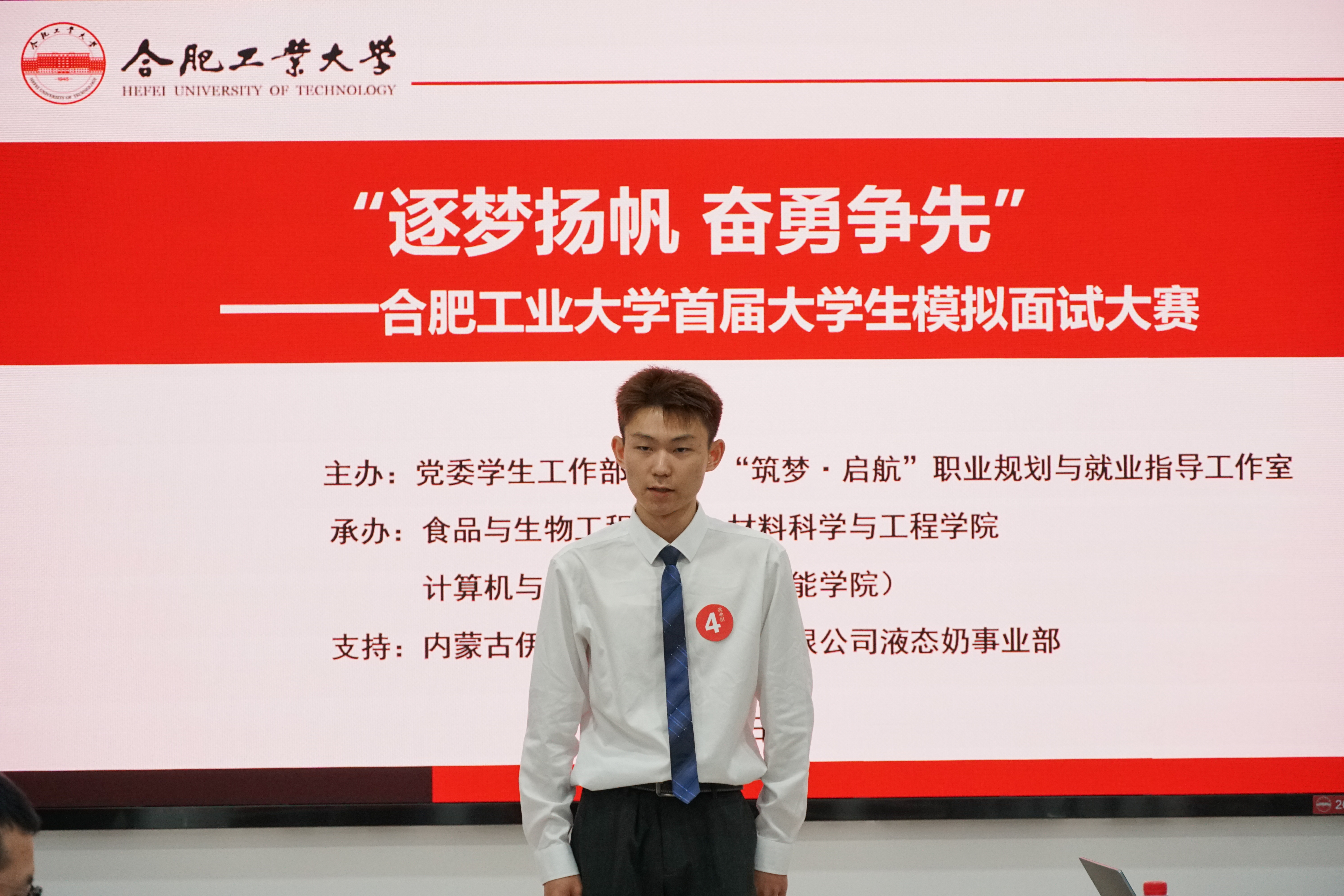 6月5日下午,我校“逐梦杨帆,奋勇争先”首届大学生模拟面试大赛在食生楼205会议室举行。伊利集团液态奶事业部合肥伊利人力资源经理杨彩娟、校党委学生工作部(处)学生就业指导中心陈贞等5位嘉宾担任评委。本次大赛共有多个学院推荐的10名选手参加,10名选手依次进行3分钟的自我展示和1分钟的现场问答。选手们针对产品经理、公务员、产品销售、制药工程师、律师等目标职业,阐述了个人能力与特长、职业选择原因、职业规划路径...