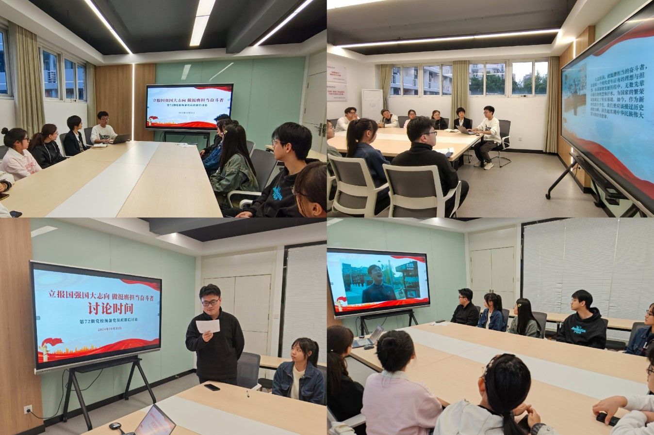 10月31日下午,76net必赢线路检测中心第72期党校预备党员班在翡翠湖校区二号楼学生社区会议室开展“立报国强国大志向,做挺膺担当奋斗者”主题讨论。活动开始,学员们学习了1935年张伯苓先生提出的“爱国三问”,观看了功勋模范人物的事迹视频,回顾了国家发展历程中先辈们的卓越贡献。通过深入研讨交流,学员们一致认为,爱国是立报国强国大志向的基础,做挺膺担当的奋斗者,是新时代大学生的使命与担当。随后,学员们围绕主题内...