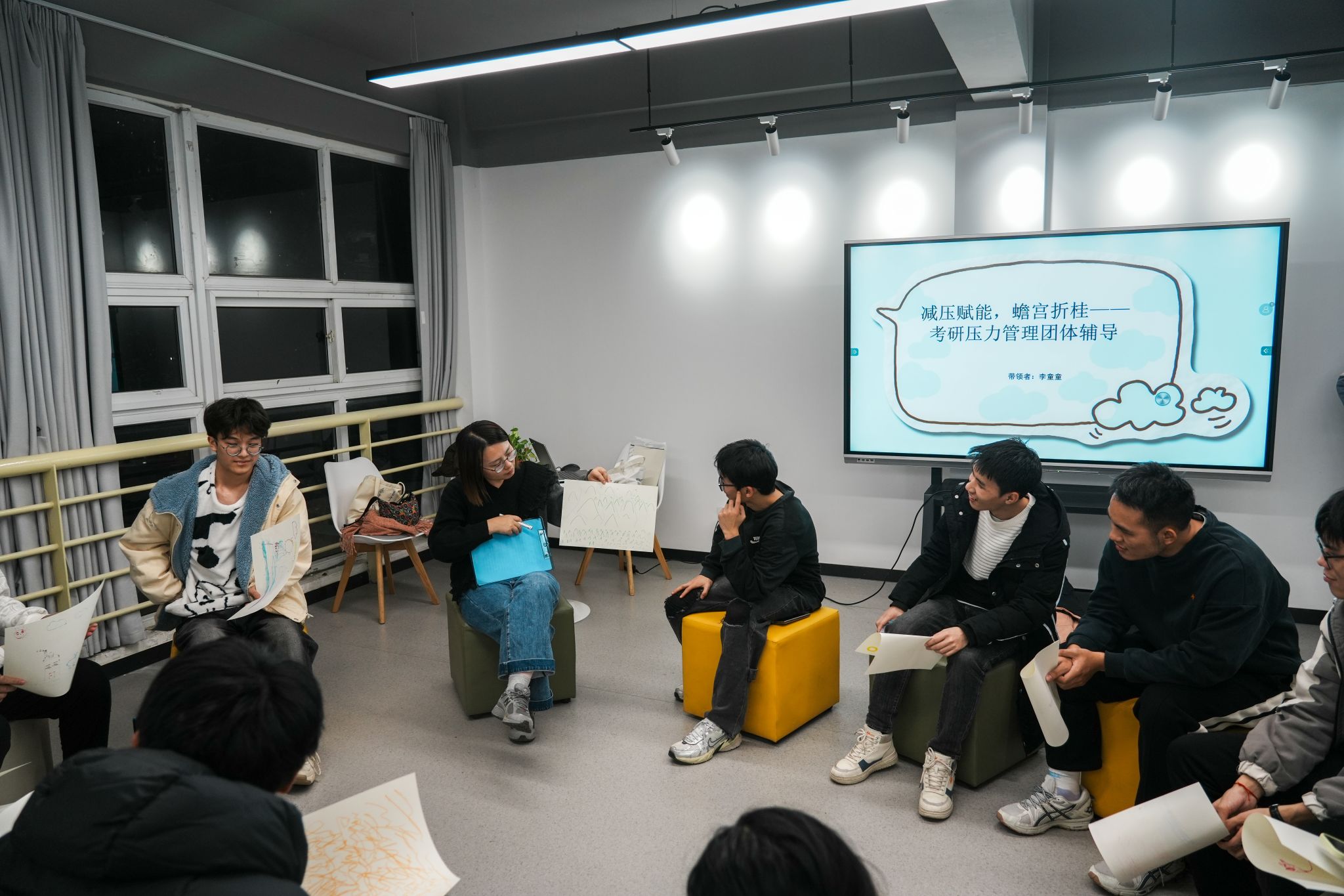 12月6日晚,76net必赢线路检测中心、莳心工作室在翡翠湖校区二号宿舍楼学生社区沙龙空间开展“减压赋能,蟾宫折桂”考研压力管理团体辅导,助力考研学生缓解备考压力。中国科学技术大学心理健康教育与咨询中心专职教师李童童担任领导者。学院相关负责老师以及部分考研学生参加了此次活动。活动伊始,李童童向同学们介绍了本次活动的意义及活动流程,鼓励大家一起创设温暖、安全的交流环境,并带领大家进行破冰游戏,快速拉进了团体...
