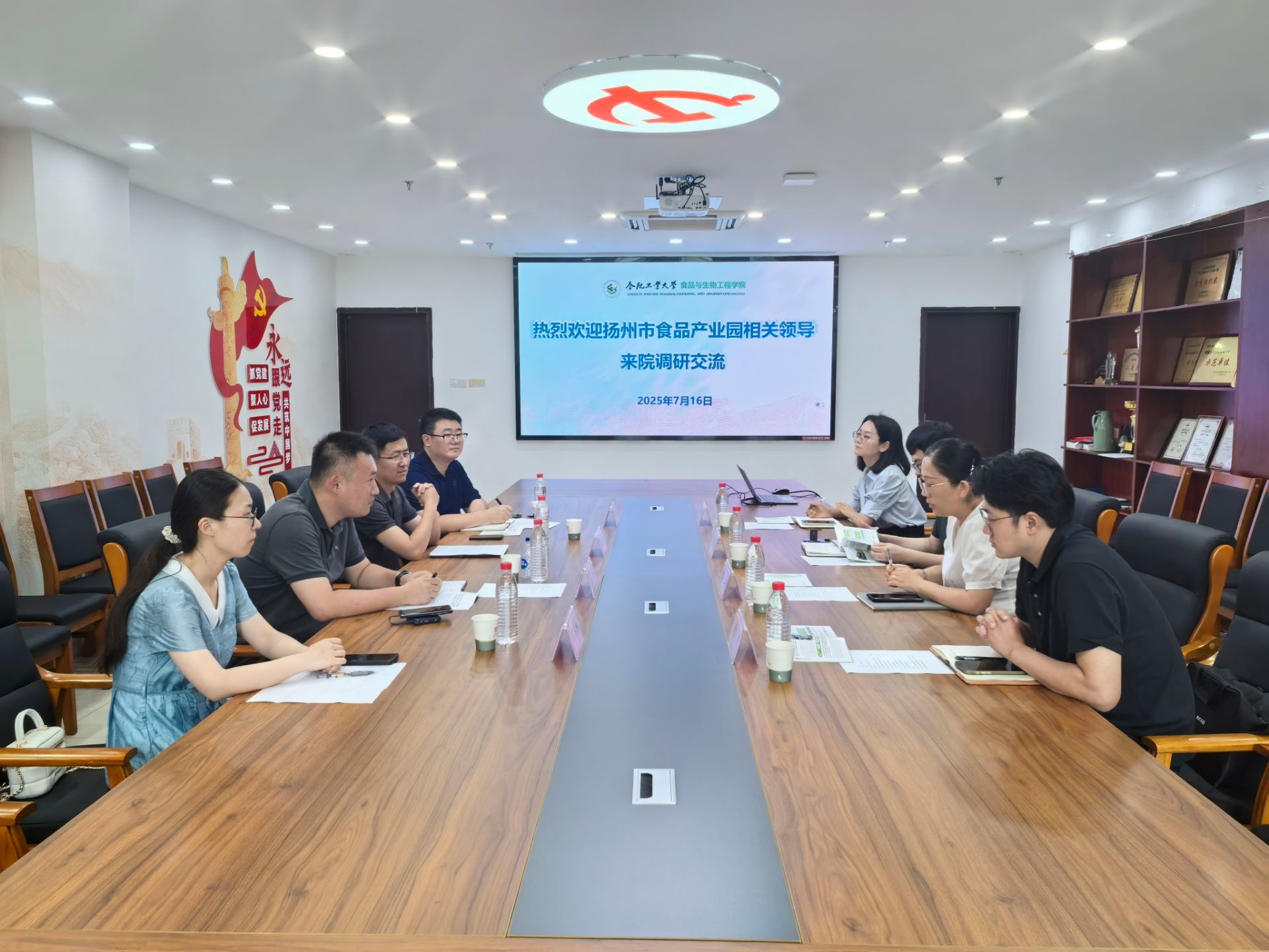 7月16日,扬州市食品产业园来访76net必赢线路检测中心。扬州市食品产业园党委副书记、管理办副主任陈沿明、广陵区组织部干部监督培训科科长荣耀,学院副院长李沛军、党委副书记兼纪委书记李艳、时杰教授等人参加交流座谈。会议由李艳主持。李沛军对陈沿明一行的到来表示热烈欢迎,从师生人数、专业设置、学科建设、人才培养、科研成果和服务社会等方面对学院总体发展情况进行介绍。希望通过整合校地双方的优势资源,在学生实习实践...