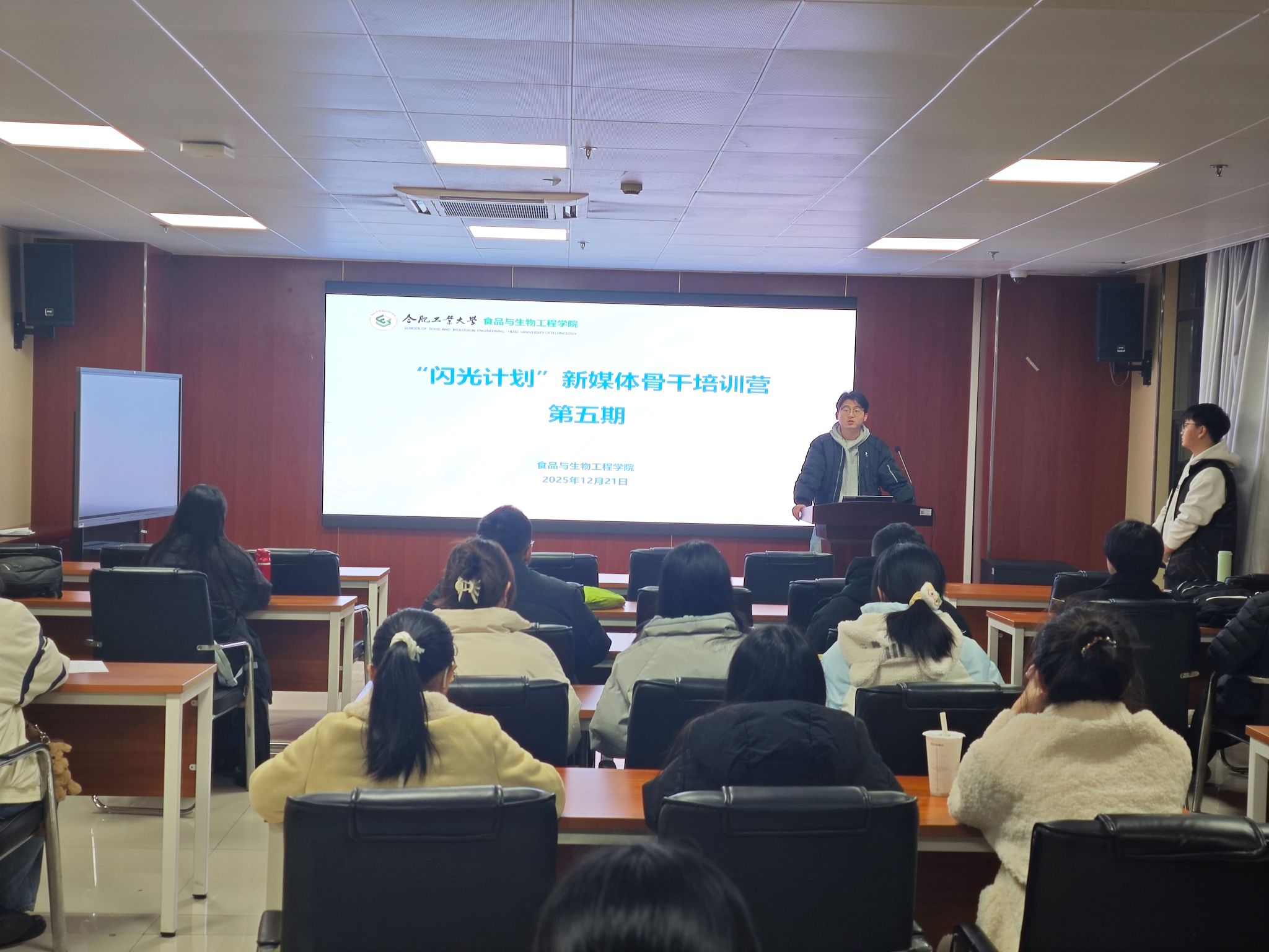 12月21日晚,76net必赢线路检测中心“闪光计划”新媒体骨干训练营第五期——《视频后期剪辑》专题讲堂在食生楼206教室顺利举行。本次培训邀请学院2022级本科生王振同学担任主讲,面向全体新媒体学生骨干30余人展开。本次培训旨在系统提升学员的短视频创作与剪辑能力,增强宣传作品的视觉表现力与叙事感染力。培训中,王振从视频类型定位、前期脚本撰写、拍摄技巧到后期剪辑全流程进行了系统讲解。他结合实例,详细解析了运镜手法、...